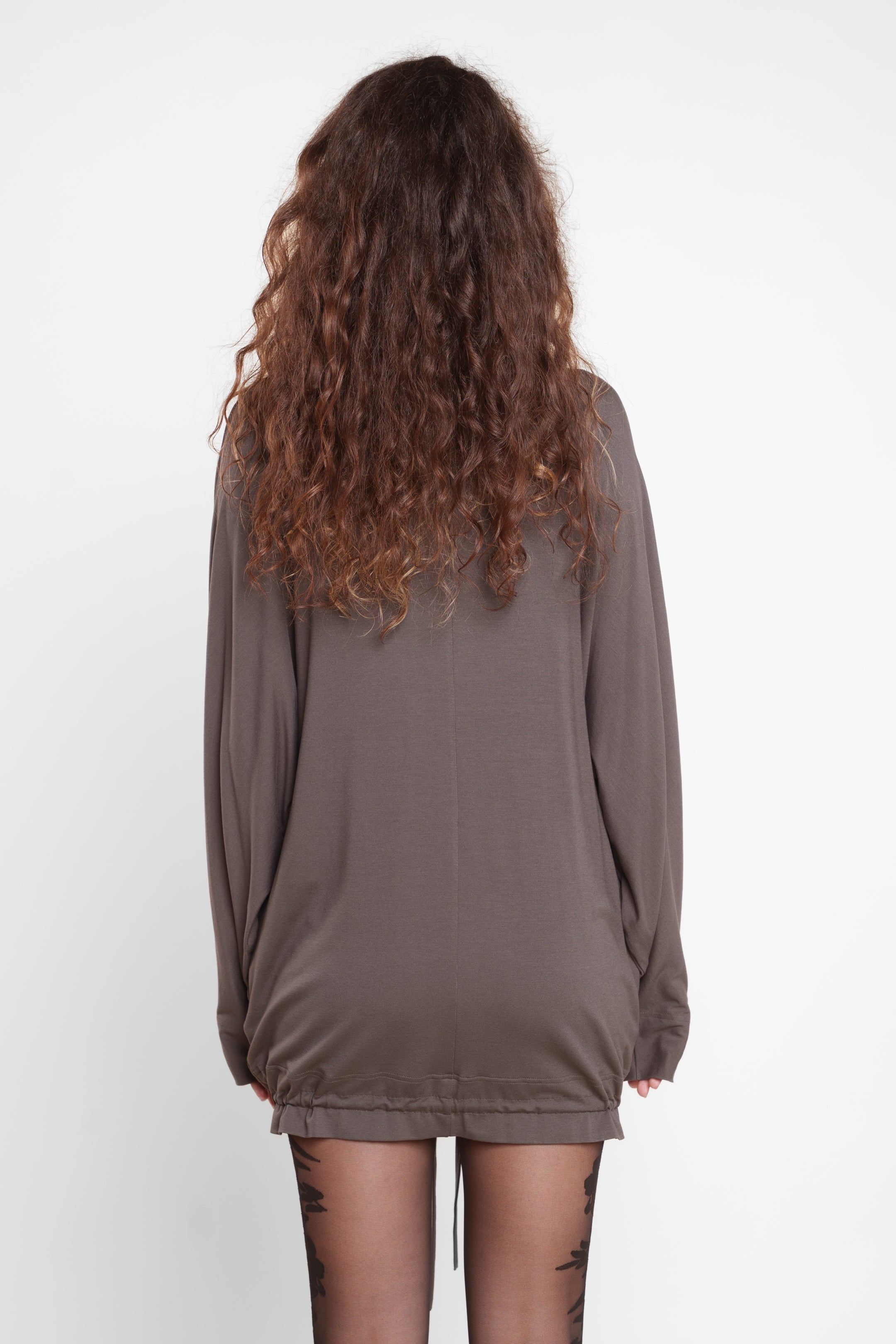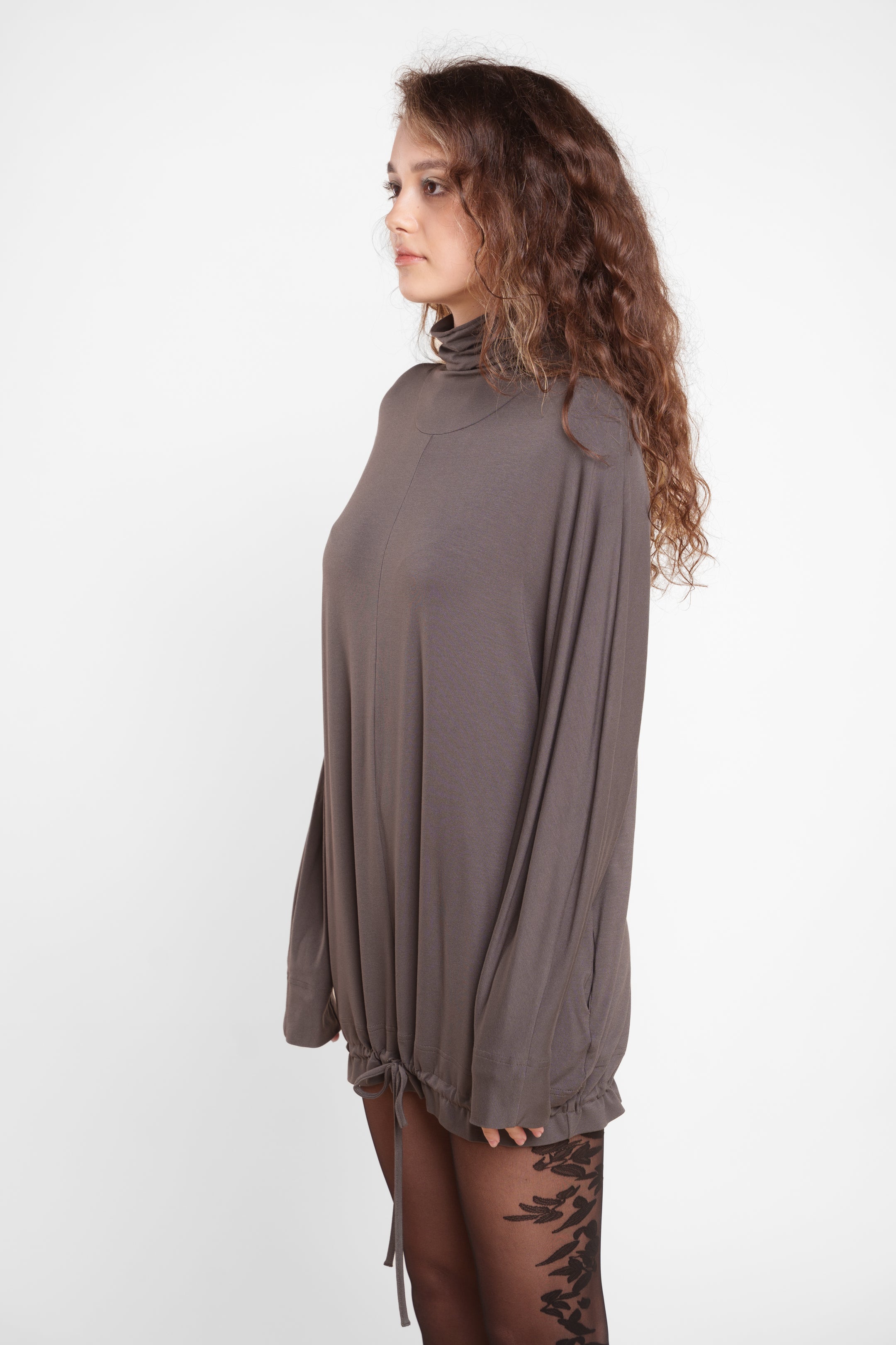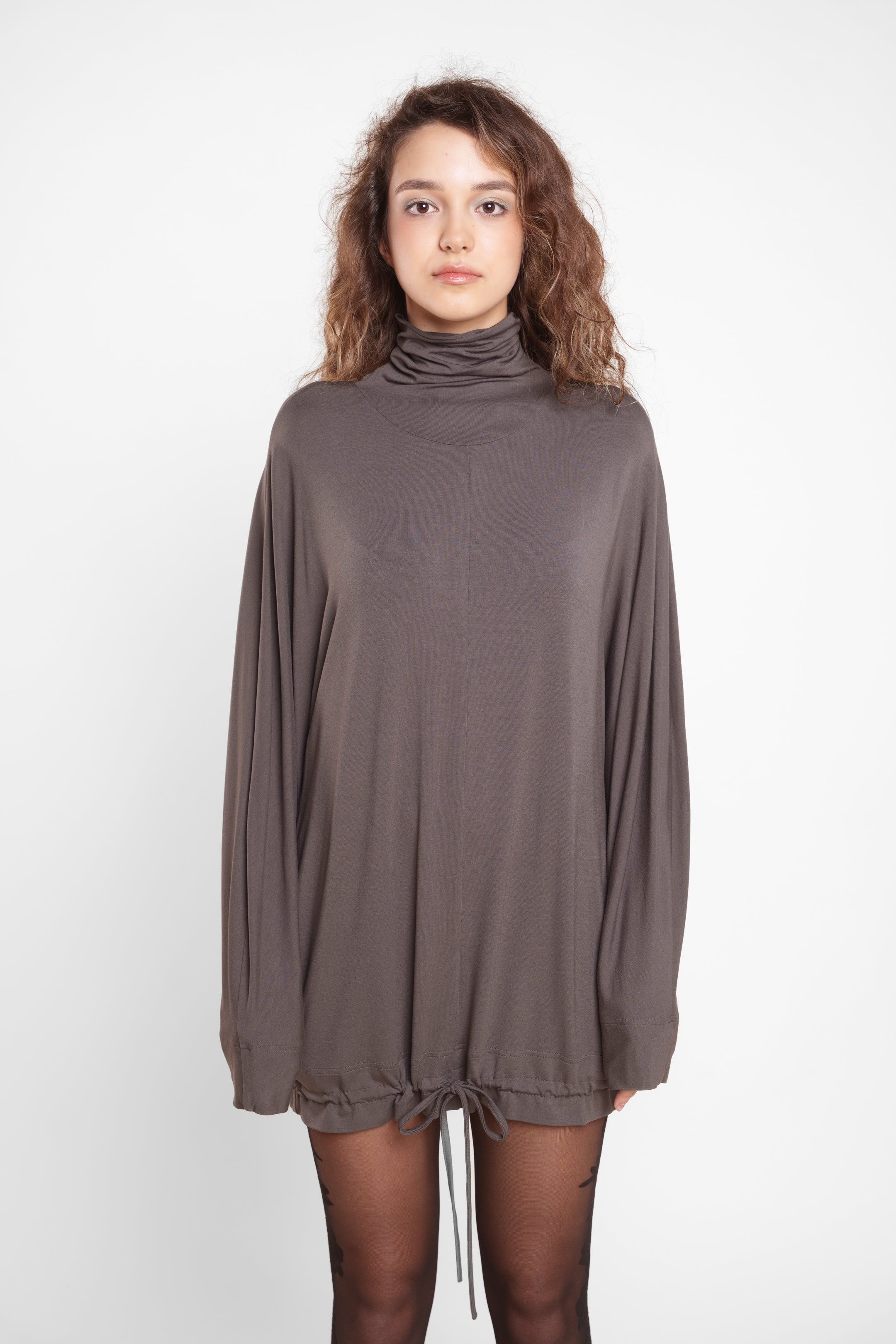 WELL je sproščena mini obleka z visokim ovratnikom in širokimi rokavi. Je eden tistih kosov, ki ga lahko nosimo  na različne načine, od vsakdanjega sproščenega videza do bolj prefinjenih modnih kombinacij. Z vrvico kroj in dolžino  lahko prilagajamo  postavi in željam in ustvarimo za našo popolno silhueto. Udoben, zračen in vsestranski kos, ki ne gre iz garderobe.