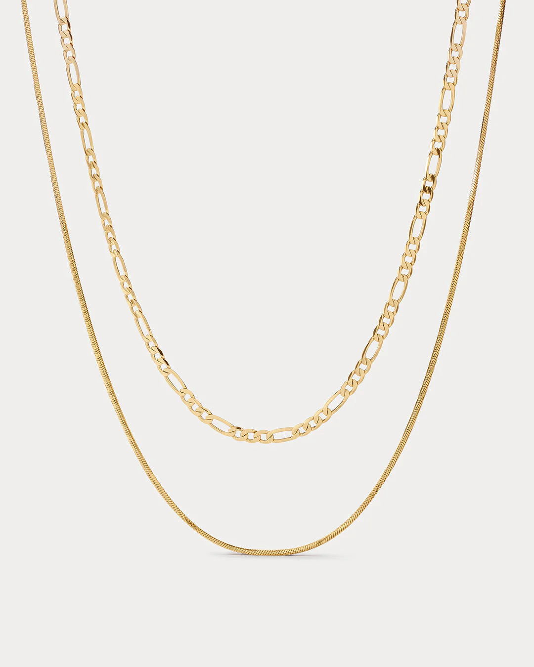 PODROBNOSTI: Elegantna ogrlica z verižico figaro in ribjo kostjo,Verižici sta dolgi 40 cm in 45 cm z 5 cm podaljškomOgrlica tehta 13 gZaponka v obliki jastoga MATERIALI: Ogrlica je 100 % brez niklja in kadmijaIzdelana iz medeninePrevleka je vodoodporna in ne pušča slediPodrobnosti prevleke: 0,3 mikrona + e-premaz za dolgotrajno...