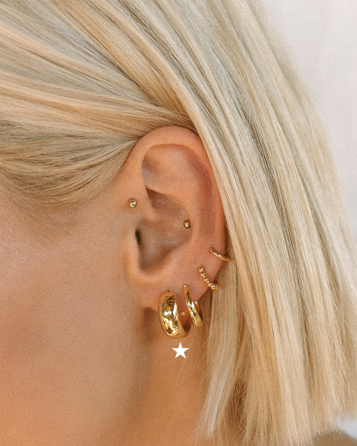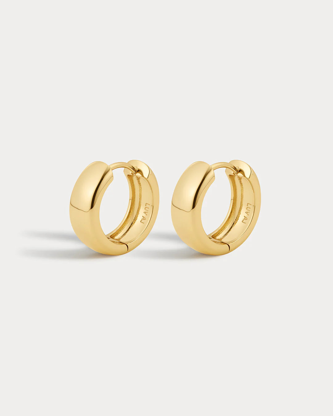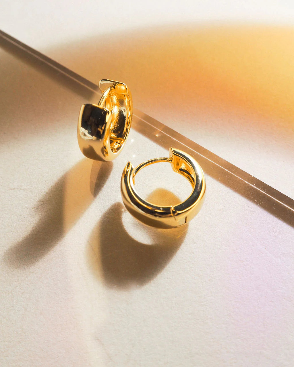 PODROBNOSTI:Par širokih kovinskih uhanovProdajajo se kot par za prebodena ušesaUhani so visoki 15,5 mm in široki 6,5 mmVsak uhan tehta približno 3 g - veljajo za lahkeMATERIALI:Izdelano iz prevlečene medeninePrevleka je vodoodporna in ne pušča slediPodrobnosti prevleke: 0,3 mikrona + e-premaz za dolgotrajno vzdržljivostPrevlečeno z visoko poliranim 14-karatnim zlatom ali...
