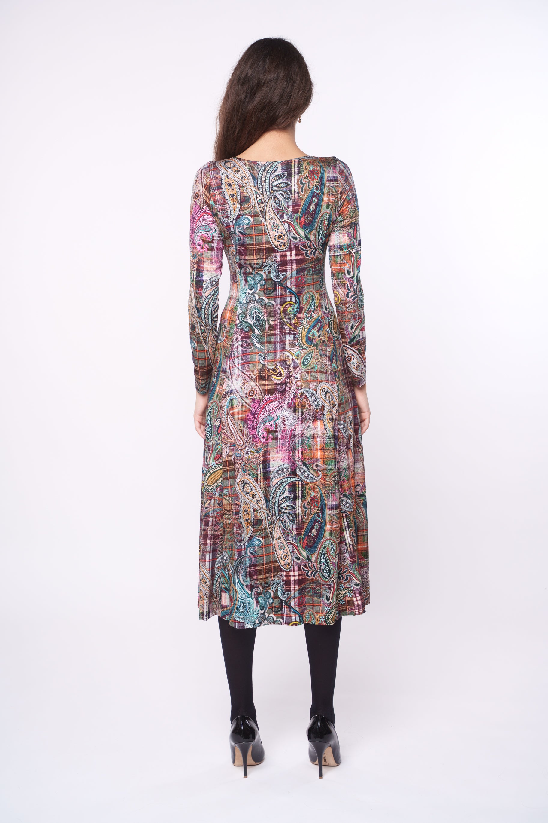JAZZ je dolg, lahkotno padajoč kos z ženstveno silhueto in globljim V-izrezom. Izdelan je iz mehke mešanice poliestra in viskoze, ki omogoča zračnost in prijeten občutek ob nošenju. Material lepo sledi gibanju telesa ter ustvarja tekoč, sproščen videz. Prepoznaven grafični vzorec v toplih rdeče-rožnatih odtenkih daje kosu izrazit karakter, hkrati pa...