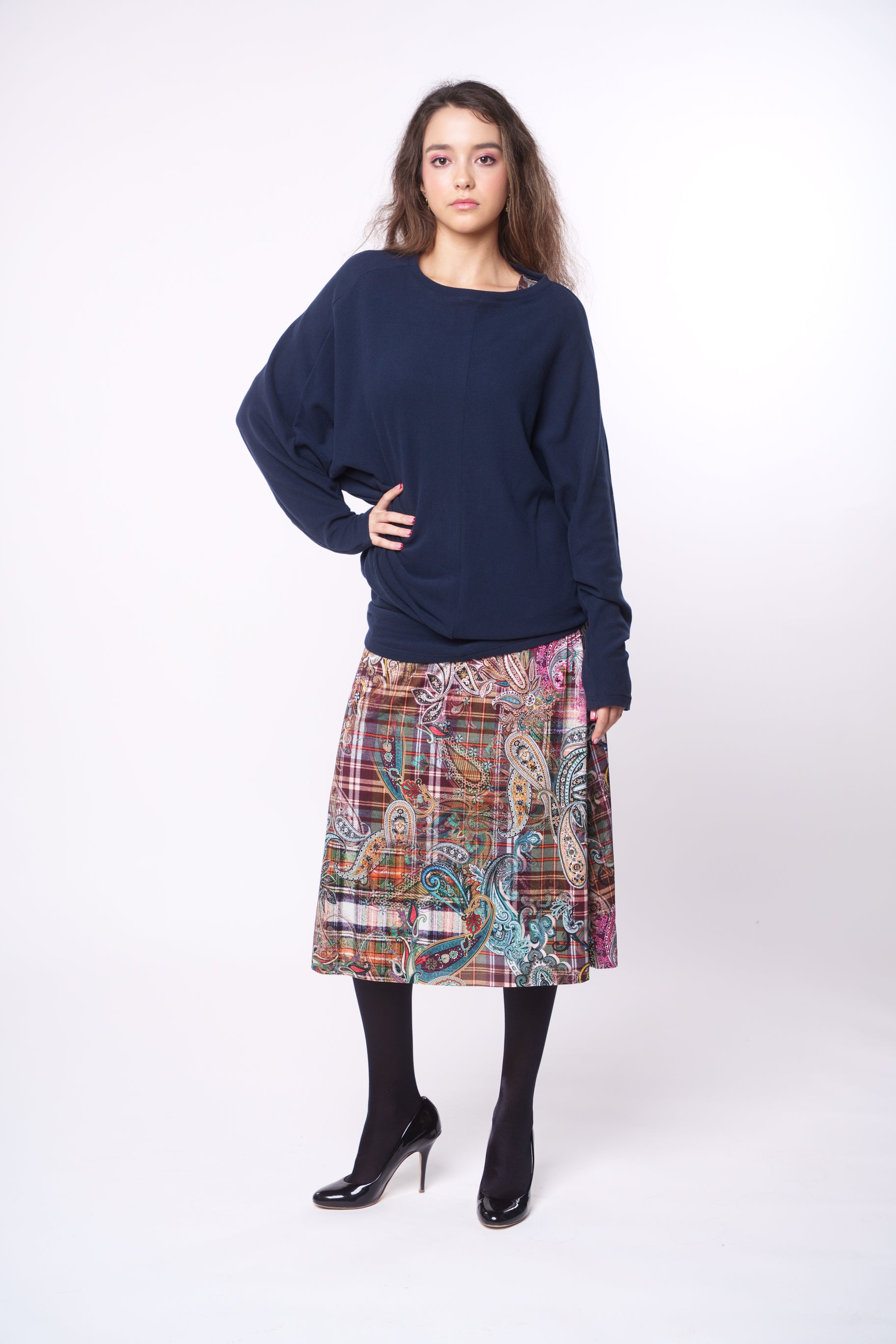 Prepoznaven grafični vzorec v toplih rdeče-rožnatih odtenkih daje kosu izrazit karakter, hkrati pa ostaja dovolj uravnotežen za vsakodnevne in bolj posebne priložnosti. Dolžina in ohlapen kroj omogočata različne stylinge — samostojno ali v kombinaciji z bolj strukturiranimi kosi.