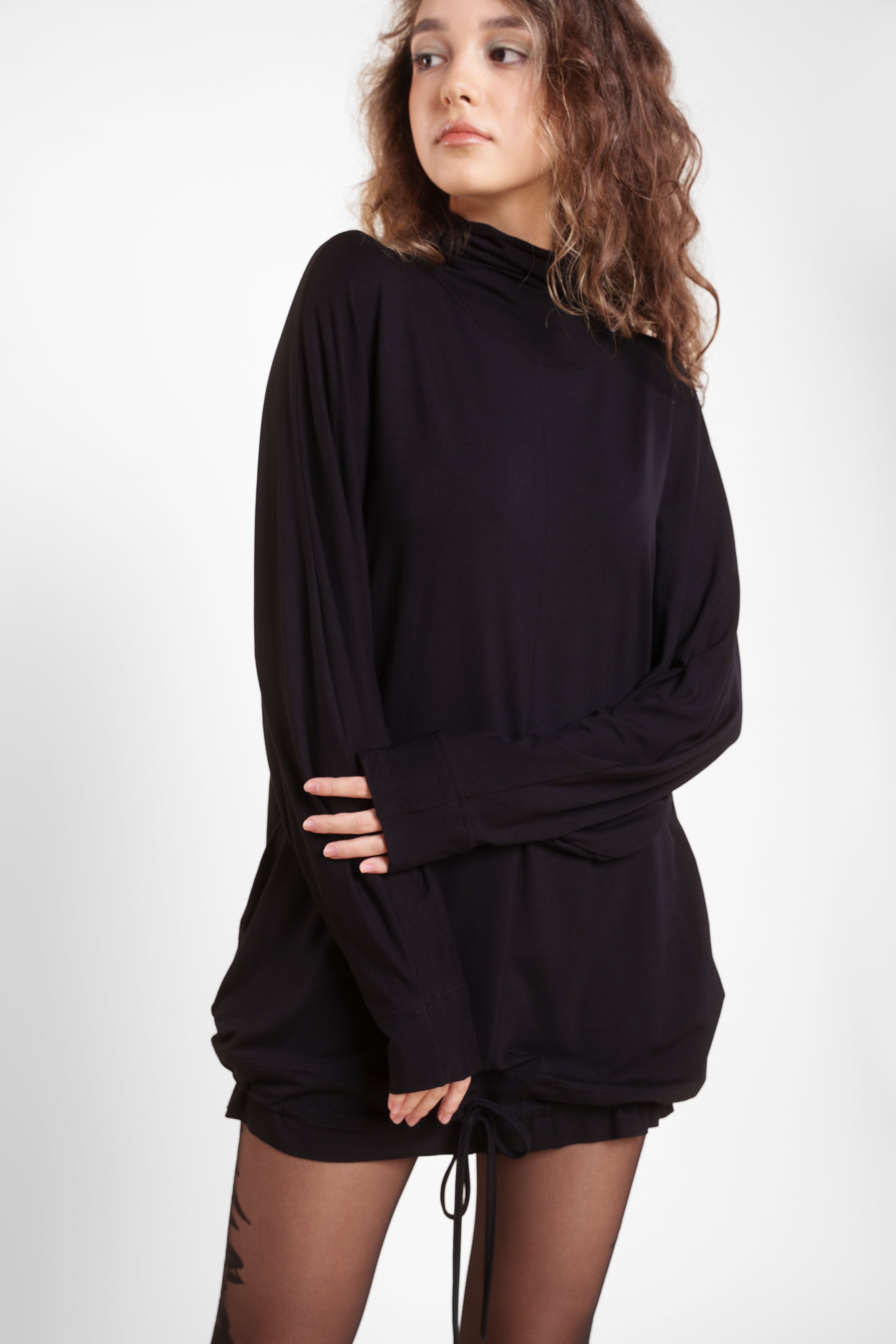 WELL je sproščena mini obleka z visokim ovratnikom in širokimi rokavi. Je eden tistih kosov, ki ga lahko nosimo na različne načine, od vsakdanjega sproščenega videza do bolj prefinjenih modnih kombinacij. Z vrvico kroj in dolžino lahko prilagajamo postavi in željam in ustvarimo za našo popolno silhueto. Udoben, zračen in...