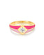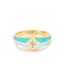 Prstan v kombinaciji barv BABY BLUE, BLUE in SREBRNE. Na sredini ima vstavljen okrogel kamen. Velikost prstana je 8,5 mm x 2,5 mm. Izdelan je iz medenine in prevlečen z zlatom. Prstan je 100% brez niklja in kadmija. Vsi predmeti so originalni dizajni Amande Thomas v studiu Luv Aj v Los...